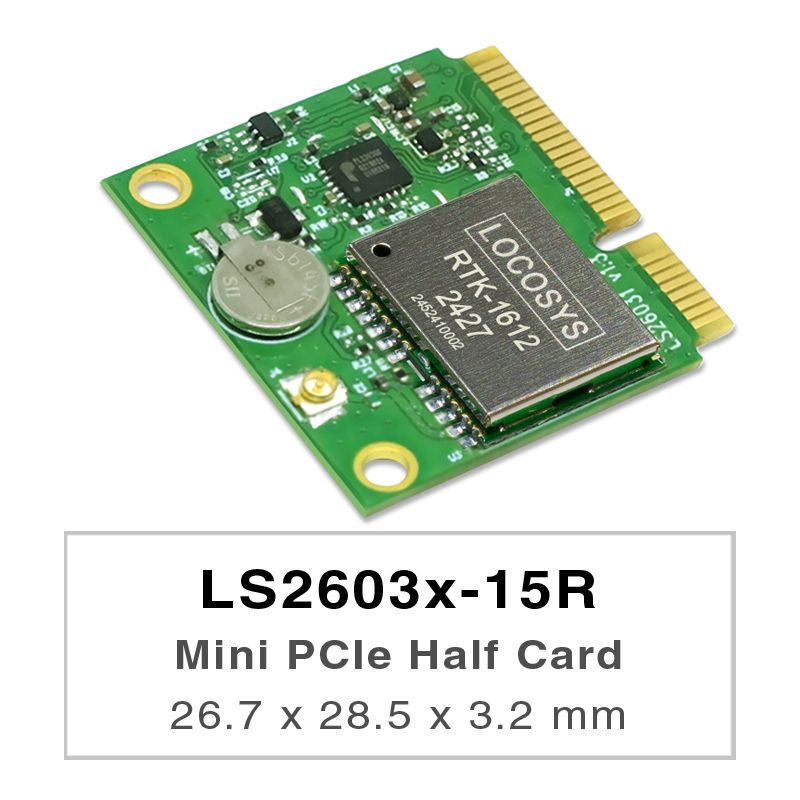 LS26030-15R and LS26031-15R are GNSS RTK modules incorporated into PCIe Full-Mini card and PCIe Half-Mini card, respectively.